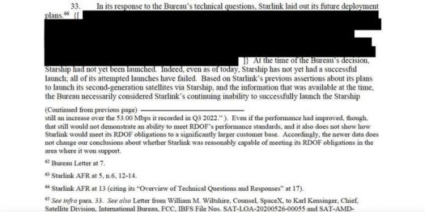 FCC 决定维持原判的第二个原因是 SpaceX 的 Starship 项目。根据 FCC 的说法,该局在评估时依赖了有关 Starship 的信息,这导致它对 Starship 发射第二代 Starlink 卫星的能力比较缺乏信心。