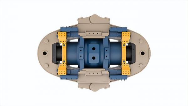 传统万吨级锻压机机身有5层楼高,重达2000吨,采用“四维制造”技术的双工位卧式橄榄型锻压机,高2米,总重量仅120吨,相当于原机总量6%。图为新型锻压机结构展示。