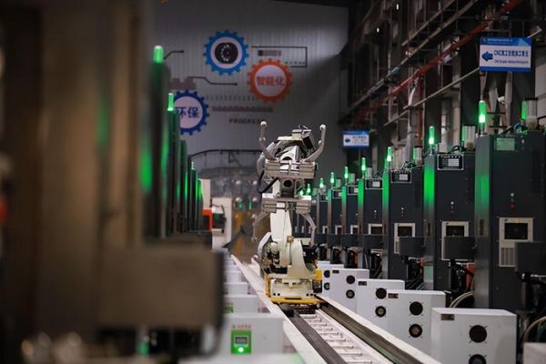 “四维制造”的锻铝轮毂双工位多功能加工中心,通过机器人实现工艺流程无隙衔接。
