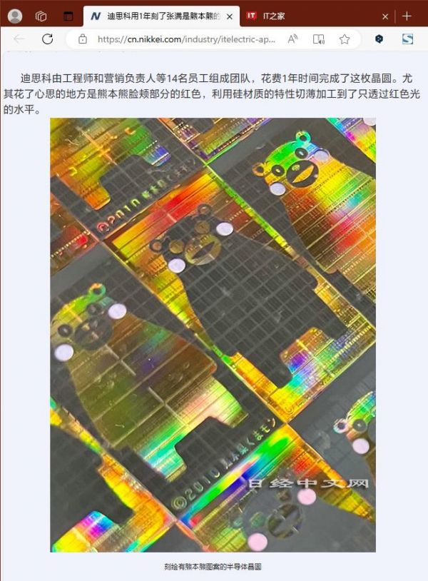 日本半导体设备制造厂商在晶圆上刻画约300个熊本熊,耗时1年