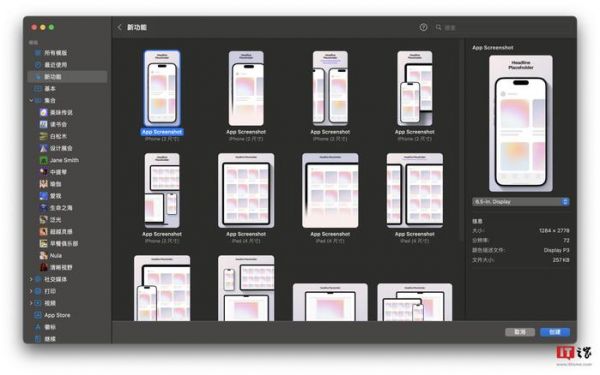 IT之家注意到,官方提供了 iPhone、iPad、Mac 三种类型应用头图,每种类型均可自定义设备具体型号,号称“完全满足苹果 App Store 上架要求”。