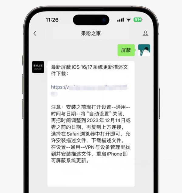 老样子,需要获取最新屏蔽iOS 17系统更新描述文件的小伙伴只要在咱们果粉之家 回复“屏蔽”即可。