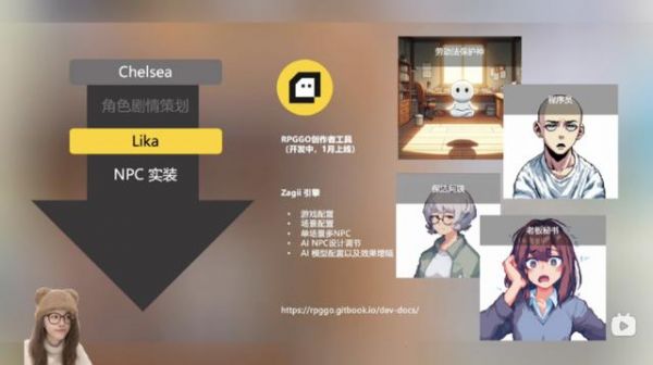 RPGGO的参展项目使用了文心一言作为NPC的中文语言模型基底,结合自研的 Zagii引擎插拔模型API能力,集UGC创意、美术开源资产整合开发成一款web端小游戏。未来,项目方计划开源该小镇成为RPGGO上层产品的一部分,供创作者和开发人员进行简易配置、资产置换使用。