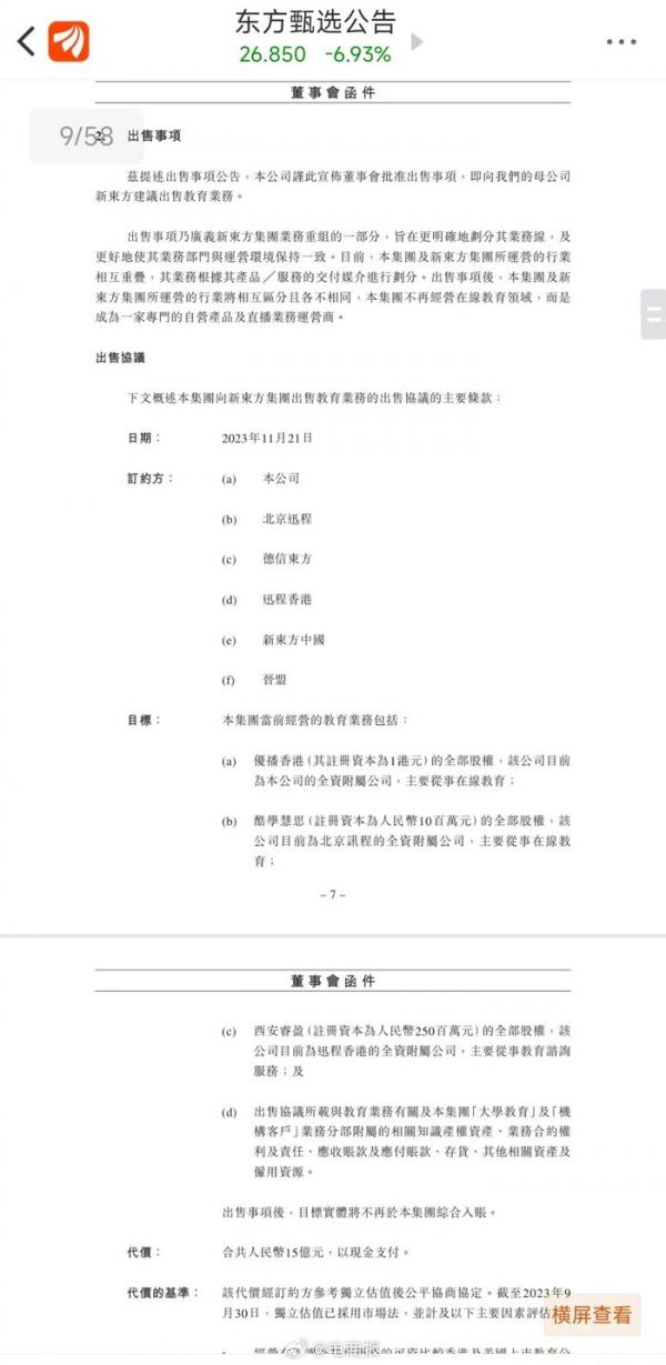 #东方甄选拟15亿出售教育业务# 东方甄选15亿元向母公司出售教育业务,将专注直播业务,马云这是神预言了。[吃瓜]