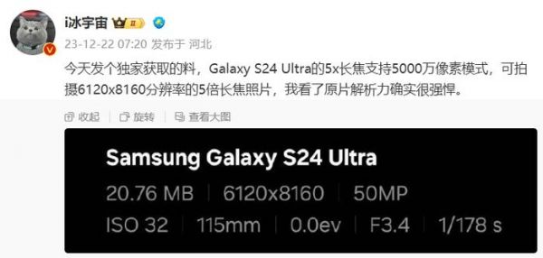 消息称三星Galaxy S24 Ultra手机拍摄RAW照片,默认升至24MP