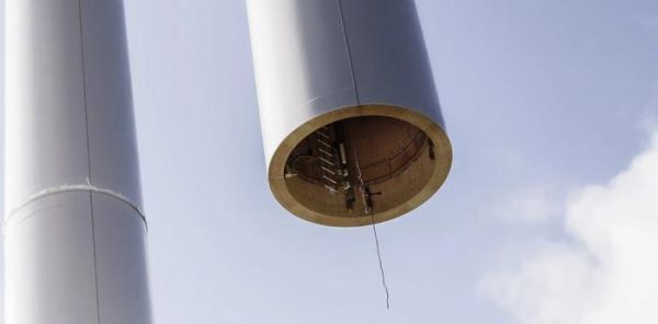 据介绍,这座木制风力涡轮机塔高 105 米。如果算上叶片的高度,可以达到 150 米。该涡轮机塔采用 144 层单板层积材打造,每层由 3 毫米厚的云杉组成。该塔共由 7 个部分组成,由 28 个堆叠的模块通过钢配件固定在一起。