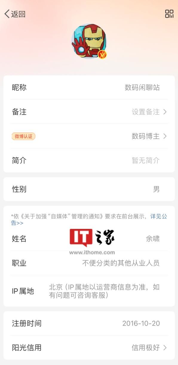 IT之家今日发现,知名数码博主 @数码闲聊站 的实名信息已在前台展示,姓名显示为“余啸”,IP 属地为“北京”。
