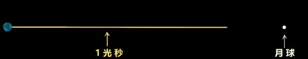还有另一种考量方法。一秒钟光线可以跑这么远,相较于月球的距离如下: