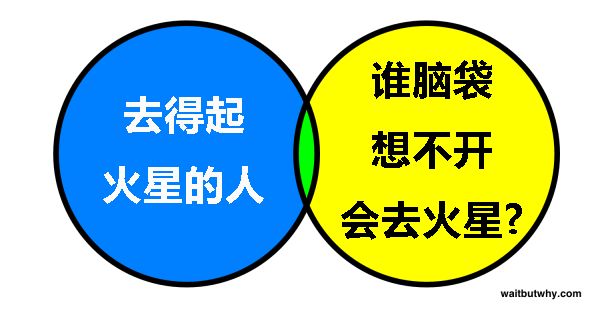 接下来就是重头戏了:有人——很可能是Space X这个公司,要在大约十年内就送第一批人类去火星——对于那些还没满50岁、对自己没生活在1969年无法为登月计划疯狂而感到惋惜的人们,你们将迎来你们的机会!无论你在世界上的什么地方,你都有机会成为火星的尼尔·阿姆斯特朗。即便现在没人知道你们是谁 –——甚至你们自己都觉得自己啥也不是——但是你们很快就要闻名于世界。