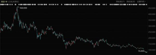 美团的股价几乎是应声下跌,12月19日当天跌幅达到5.39%,倘若把时间线再拉长一些,美团近一月的股价已下跌约32%,近一年的股价也已下跌超过56%,距离2021年的历史高位更是已经下跌了83%。