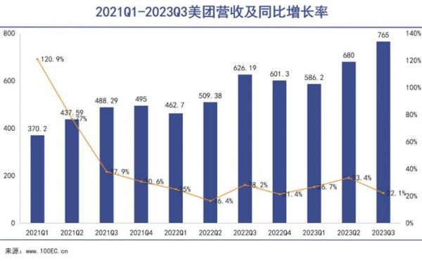 美团股价表现(自2020年10月至今)然而不久前美团才交出一份增长不错的财报。报告显示,2023年第三季度美团实现营收764.7亿元,同比增长22.1%;实现净利润35.9亿元,同比增长195.3%;经调整净利润57.3亿元,同比增长62.4%。