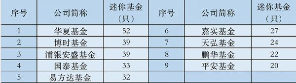 表:公募基金公司迷你基金数量排名 来源:Wind,界面新闻整理 注:含ETF联接基金,发起式基金未剔除