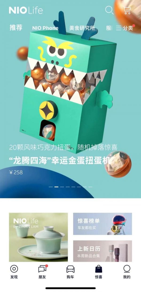 翻看蔚来App,在NIO life惊喜商城里面,所囊括的商品从手机到美食,再到服饰、鞋包、厨具、酒、户外用品、运动潮玩,几乎包含了所有生活所需产品。