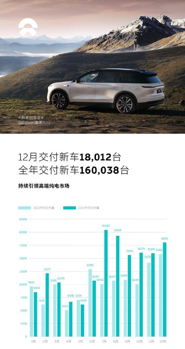2023年全年,蔚来共交付新车160038台,同比增长30.7%;截至2023年12月31日,蔚来新车已累计交付449594台,持续引领高端纯电市场。
