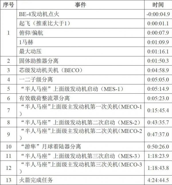 “火神”火箭的飞行时序见图1和表1。在起飞后约50min,“半人马座”上面级第二次关机后,“游隼”月球着陆器与火箭分离,预定的分离轨道近地点为490km、C3值为-2.01km2/s2、倾角为30.03°。主载荷分离之后,“半人马座”上面级进行了第三次点火,搭载塞勒斯提斯公司的纪念载荷进入环日轨道。