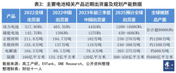 这一轮动力电池产业的爆发式增长从2020年开始,早期因为产能不足,导致产业链各环节价格暴涨,进而推动产业内外的资本蜂拥而上,扩大产能。“财经十一人”根据公开资料统计,以2022年的出货量为基准,规划产能最少是其5倍,相较于2025年的预测需求,产能过剩至少两倍。