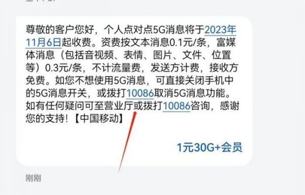 图源:微博其次,是绕不开的收费问题。5G消息和短信一样,也是需要按次收费的。虽然此前运营商在试商用期间采取了发送免费的政策,不过后续有部分省份调整了资费政策,不再免费。在2023年11月起,就有用户收到了含有5G收费标准的信息,文本消息0.1元/条,富媒体消息0.3元/条。