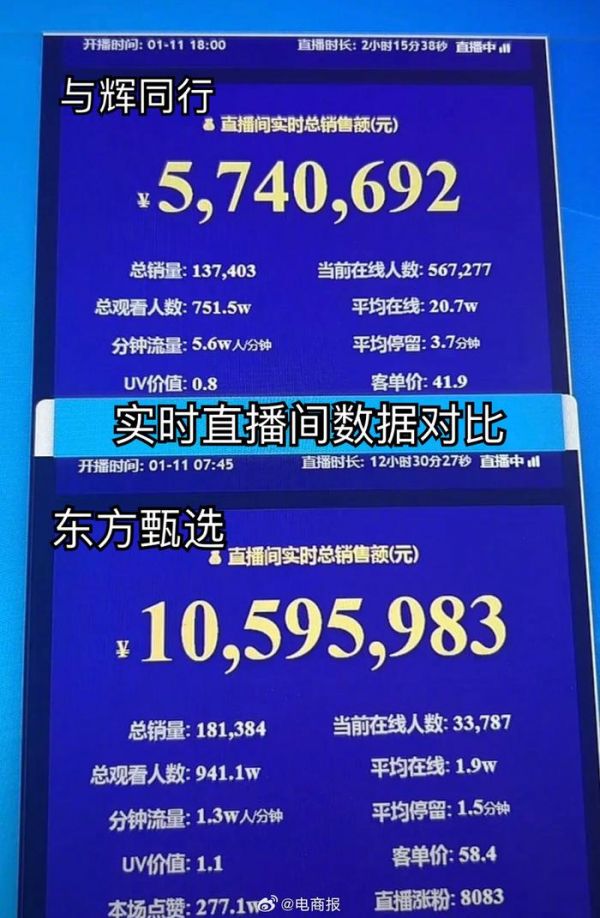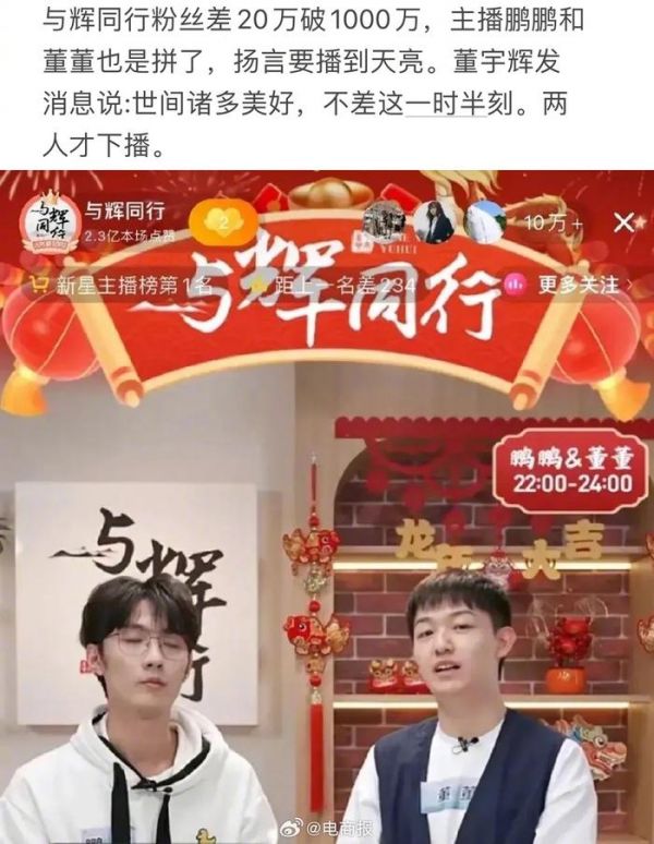东方甄选流量大滑坡,与辉同行开播2小时销售额就达到了大号的一半。