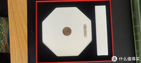 打开盒盖,很简单,一个扁平的的六方形底座,还有个小盒子应该是数据线。看到那个按钮,我忍不住上去按了好几次,灯呢,灯呢,没亮啊