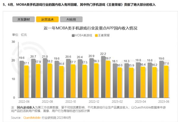 根据QuestMobile用户数据,2023年上半年,《王者荣耀》平均月活为1.4亿,在游戏类目中排名第一。这个数字相较于以往未能实现大幅增长,2022年12月为1.5亿,2022年1月为1.6亿,2021年每月则在1.3亿到1.7亿之间。而在巅峰期,月活可达2亿+。
