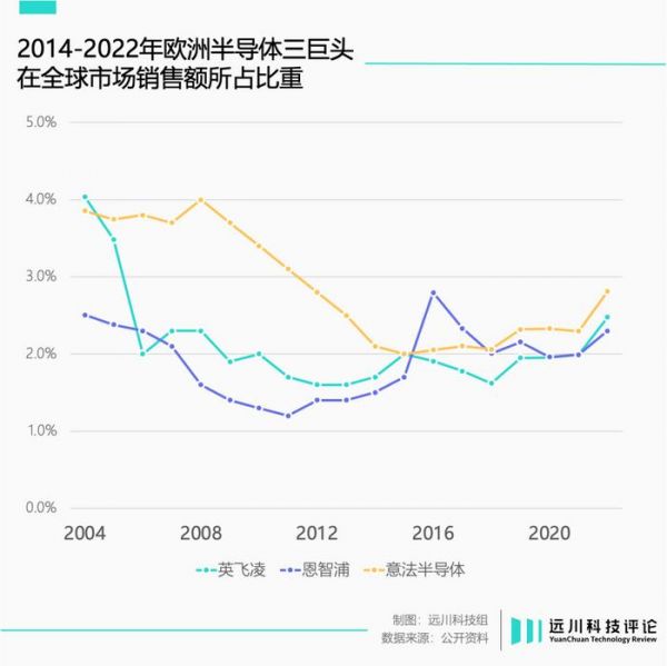 至于汽车芯片,那更是欧洲半导体的看家本领。英飞凌、意法半导体、恩智浦三家巨头,至今仍是该赛道的前五名。