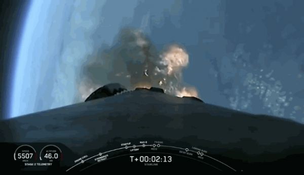 图 Falcon 9发射第6批星链发动机2分21秒异常关机