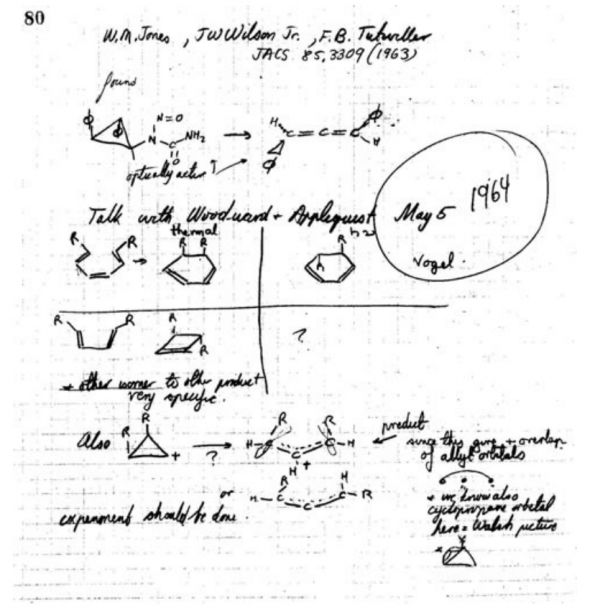 Hoffmann关于轨道对称性守恒原理的手稿 | 图源:Angew. Chem. Int. Ed. 2004, 43, 6586.