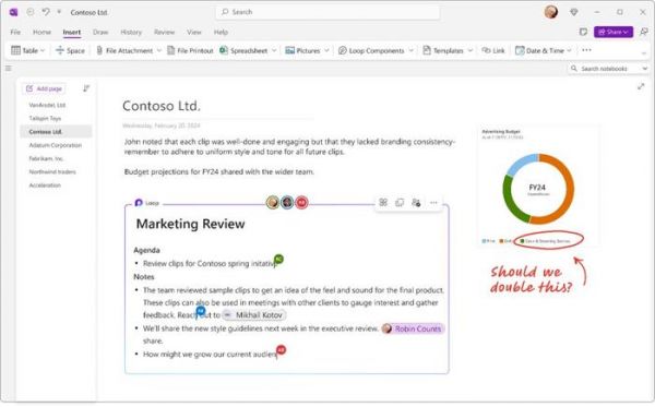 微软表示:“用户在 OneNote 应用中使用 Loop,可以在和他人实时协作的时候,不需要切换不同应用程序,从而专注于自己的内容”。