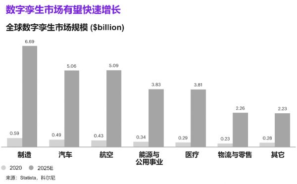 数字孪生市场将在未来五年以50%~70%的年复合增长率快速扩张,具体增速取决于不同行业,主要集中在制造业、航空业和汽车行业(见图10)。