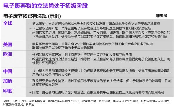 更好的监管和财政激励措施对于获取电子废弃物的价值至关重要。刚刚起步的电子废弃物立法已经到位,但需要加强监管和经济激励措施,以扩大回收和循环经济。