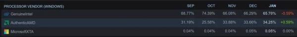 1 月 Steam 软硬件报告:AMD 处理器占 34.25% 创新高