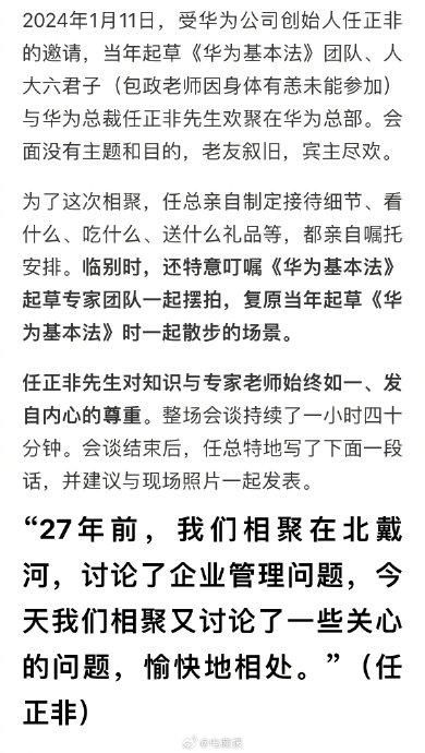 华为任正非亲自招待,起草《华为基本法》团队再相聚……