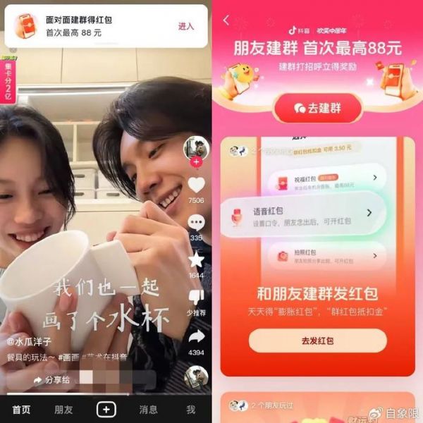 除了砸钱拉新,抖音也在砸钱刺激对话框和群内的用户活跃度。