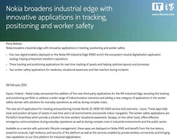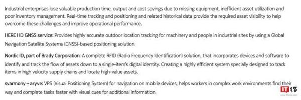 IT之家从新闻稿中得知,诺基亚目前与 HERE 联合推出了一款名为“HERE HD GNSS”的应用,号称能够实时定位所有工控资产,并提供室内导航,此外诺基亚还与其他一些公司合作,推出了 Nordic ID、Svarmony-Aryv 等应用,据称能为工控部门提供有效的应急通信能力。