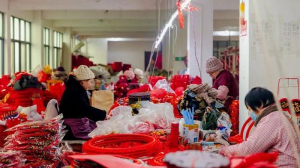 被称为“中国结之乡”的红花镇是全国最大的中国结生产基地,销量占全国份额70%以上,年创产值12亿元。从1月开始,申通快递山东郯城网点的中国结单量便开始上升,与淡季相比涨幅超过十倍。