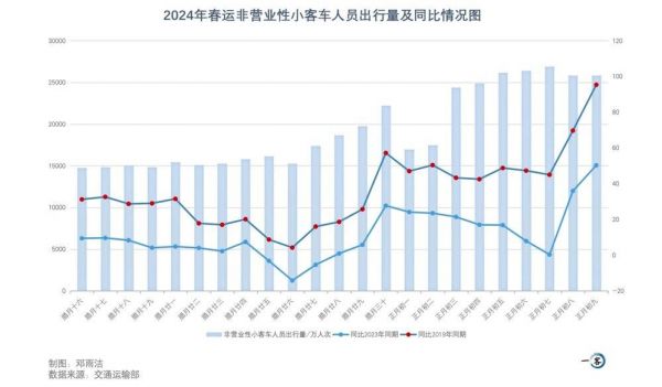 一位接近政策制定的人士对出行一客表示,随着出行方式的多元,春运的统计口径逐步扩大,近两年先是新增纳入私家车、跨区域网约车,再从高速公路扩大到普通国省道,因此整体出行人次、自驾出行人次相比此前都有明显提升。