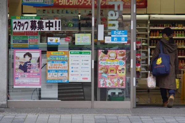 一家招聘兼职收营的便利店,时薪紧贴本地法定最低收入,1008日元