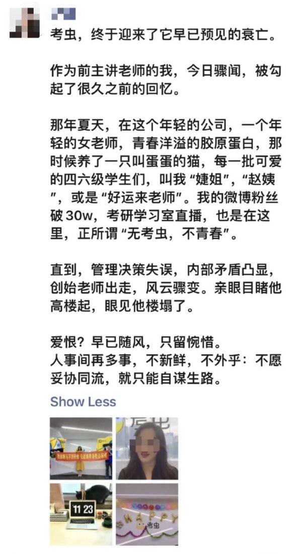 考虫为什么会倒闭呢?在互联网平台上,有一位自称为前主讲老师的网友称,考虫管理决策失误,内部矛盾凸显,创世老师出走,风云骤变。