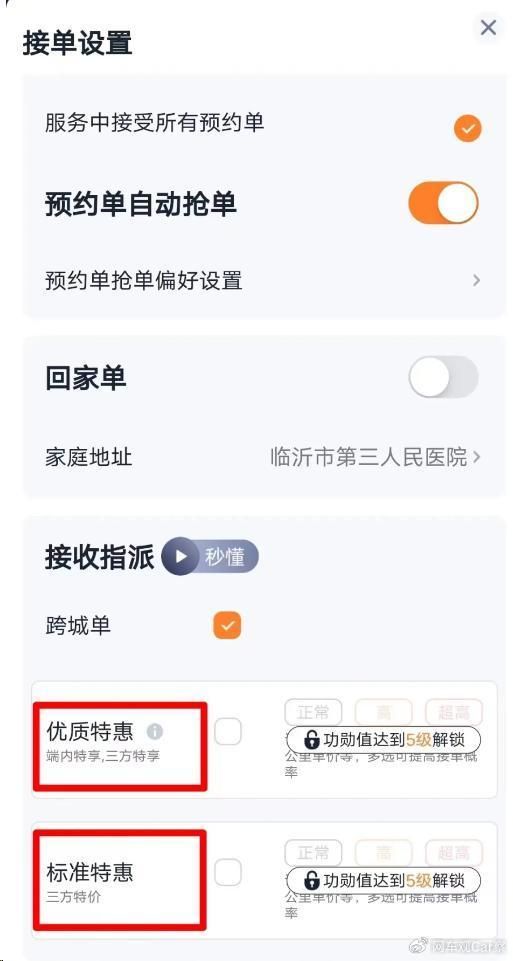最近,有网约车司机反映,T3平台的特惠订单发生了一些变化,接单设置中的跨城单出现了“优质特惠”和“标准特惠”两个选项,并显示功勋值达到5级才能解锁。