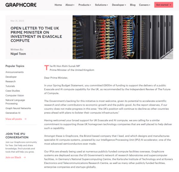 [4] OPEN LETTER TO THE UK PRIME MINISTER ON INVESTMENT IN EXASCALE COMPUTE,Graphcore
