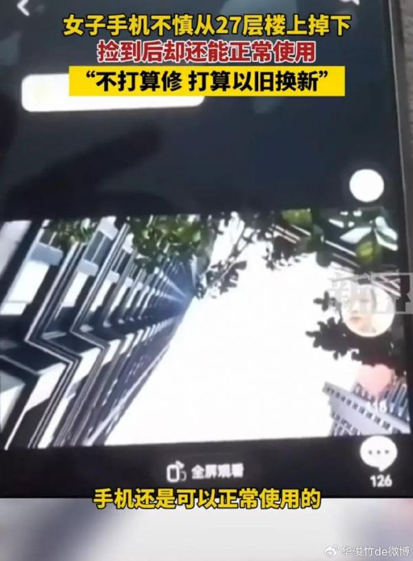 手机27楼掉下竟毫发无损,什么手机这么牛?网友:遥遥领先
