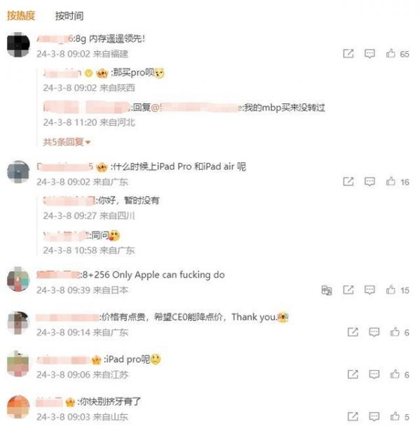 但网友在其评论区纷纷表示质疑,“8g内存遥遥领先”“8+256 Only Apple can fxxking do”“笑死,2024年了还有人在卖8+256的配置”“您确定8GB适合学生?且超强性能”等等。