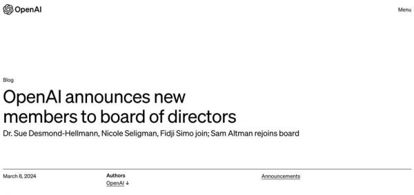 二、OpenAI治理结构重磅改进,三位新成员加入董事会