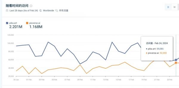 根据海外流量检测网站similarweb.com,目前爱诗海外产品PixVerse月访问量增长迅猛,已经超过百万,用户群里中有影视、游戏、广告主、艺术创作者等各行各业的人。