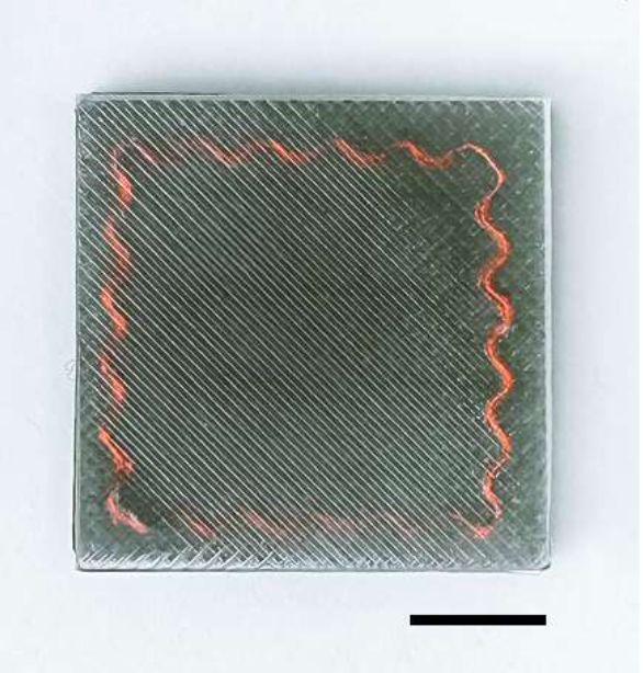 图|磁弹性层结构参数。边长为 30mm。12 个半圆形单元,直径 2.16 毫米,在蛇形铜线圈中,跨度 25.92 毫米。比例尺为 10 毫米。
