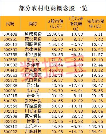 在政策的大力支持下,相关概念股将面临新发展机遇。证券时报·数据宝统计,A股市场上,涉及农村电商的概念股仅38只。截至3月13日收盘,概念股A股市值合计4819亿元。