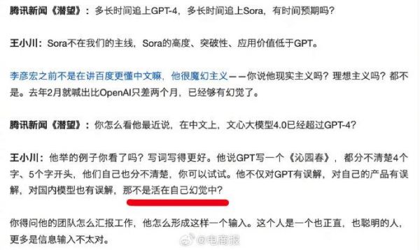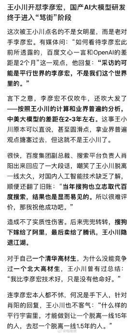 李彦宏再被怼,搜狗前CEO王小川:对GPT和自己的产品都有误解,活在幻觉中。