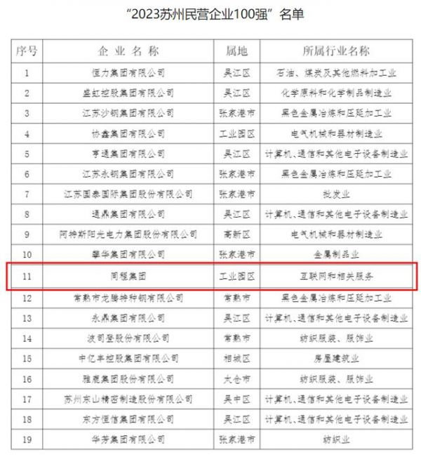 同程集团位列《2023中国民营企业500强榜单》,以451亿元营收排在第270名。同时,也位列苏州民营企业100强,排在第11名。也就是说同程集团不但是500强民营企业,还是苏州第11大民营企业。