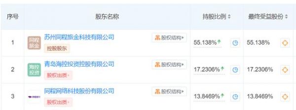 第二大股东是青岛海控投资控股有限公司,持股17.23%,这家公司是直属于青岛西海岸新区管委的国有资本控股集团,妥妥的大型国企。第三大股东是同程网络科技股份有限公司,持股13.85%。