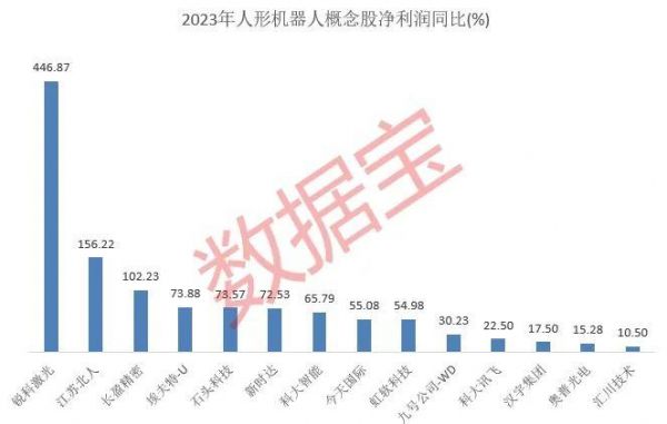 以净利润增速看,锐科激光、江苏北人、长盈精密2023年净利润同比增幅均翻倍,依次为446.87%、156.22%、102.23%;石头科技、今天国际、虹软科技净利润增幅也在50%以上。